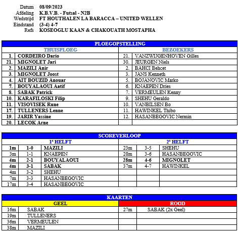 Drie minuten na de pauze gaat de thuisploeg in de aanval, maar pijnlijk balverlies brengt Wellen met 2 spelers voor doelman Mignolet. Zij tikken de man meer situatie wél goed uit en het staat 3-5, getekend Shehu. De thuis ploeg gaat op zoek naar de aansluitingstreffer, maar de wedstrijd valt in zijn definitieve plooi net voor het half uur, wanneer nieuwkomer Sabak met een 2e gele kaart vroegtijdig de arena moet verlaten en de bezoekers de man meer situatie opnieuw meteen afstraffen via Hasanbegovic, 3-6. De thuisploeg blijft echter wel knokken en Mignolet kan binnen de minuut met een goede kaats de marge opnieuw op 2 doelpunten brengen, 4-6. De thuisploeg probeert met man en macht opnieuw aan te sluiten, maar een goede Niels Jeurgen en het doelkader weerhielden onze moedige jongens om terug te komen. Drie minuten voor het einde werd de eindstand gescoord door Hawinkel, die in een 1/1 powerplay tegen Bouyalaoui kon afronden, 4-7.