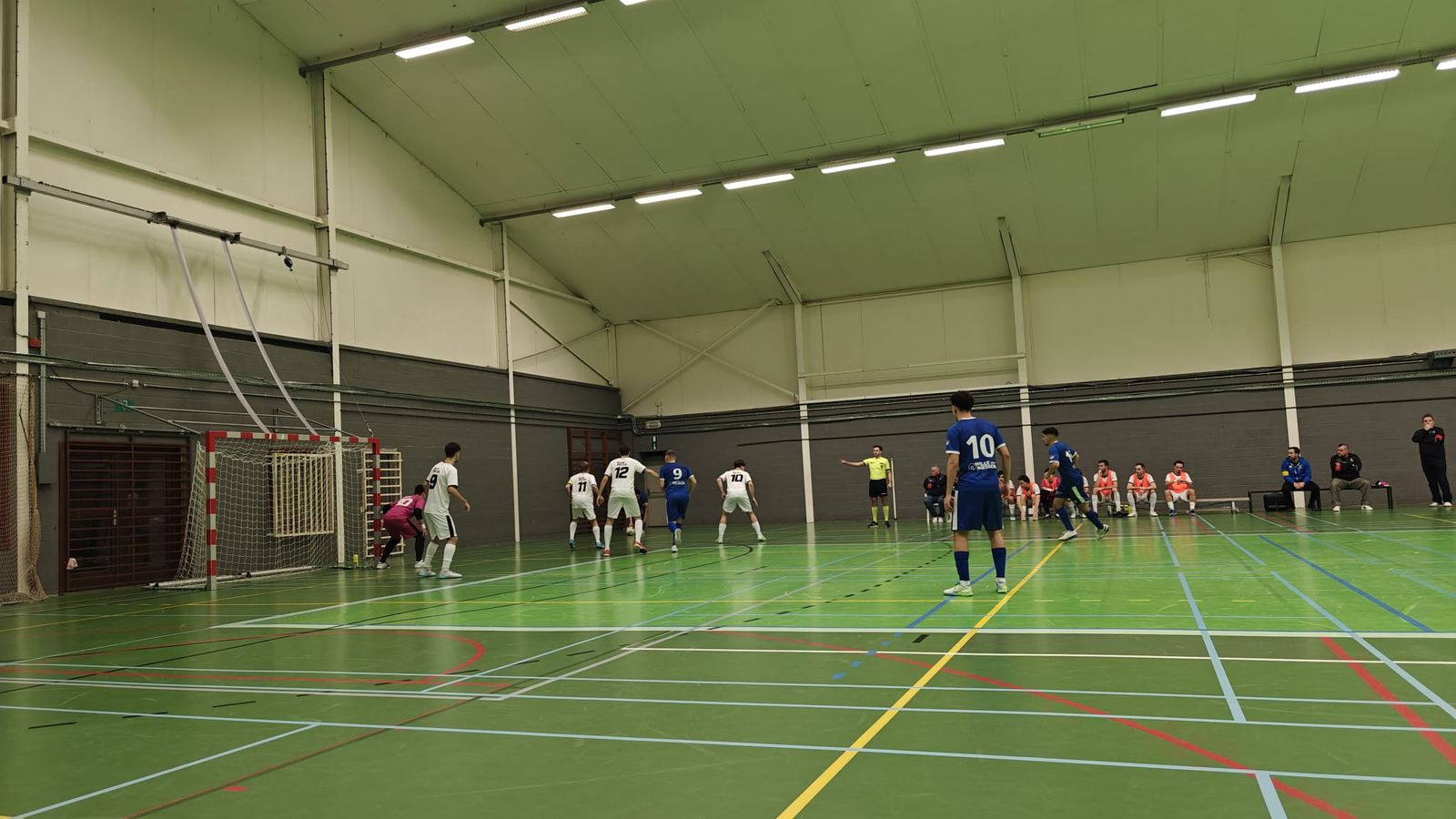 Ze startten wervelend met mooi futsal en een thuisploeg die geen greep kreeg op de flitsen van de bezoekers. Dat resulteerde na 6' in een 0-3 achterstand na doelpunten van Op De Locht, Grain Saad en Oizaz. Pas halfweg de eerste helft kon de thuisploeg in de wedstrijd scoren wanneer ze op vrije trap, waar doelman Mignolet een kadootje uitdeelde, de 1-3 scoorden. De bezoekers kregen wel meteen een antwoord bij elkaar gespeeld, maar Ouchen "vergat" te scoren aan de 2e paal. Twee minuten later kreeg Shehu alle tijd van doelman Mignolet om de bal beheerst te scoren in het doelgebied, 2-3 in de plaats van 1-4. Maar nog voor de rust stond de marge alweer op 2 stuks, wanneer Kobachidze de bal verovert en doelman Galje kansloos laat, 2-4, meteen ook de ruststand.